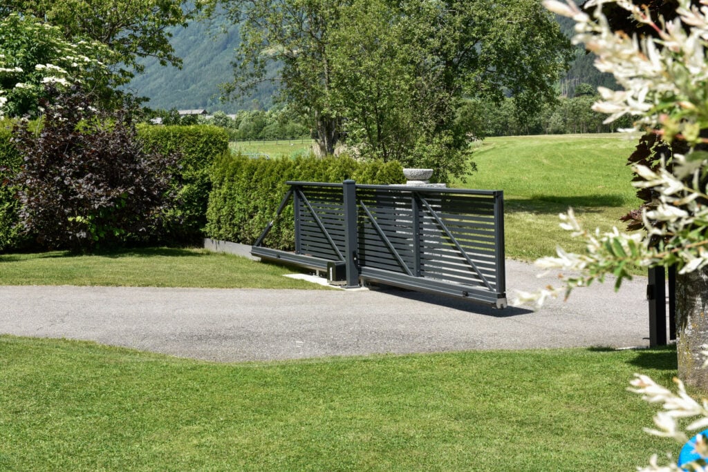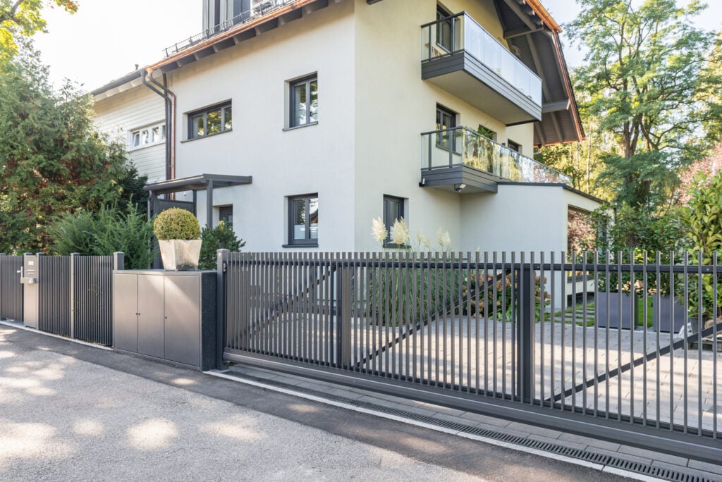 Alu Schiebetor als Einfahrt für umzäuntes Einfamilienhaus – Leeb Zauntore