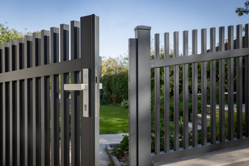 • Form & Aufbau: Meist ein- oder zweiflügelig, stabiler Aluminium-Rahmen, harmonisch an die Zaunanlage angepasst.