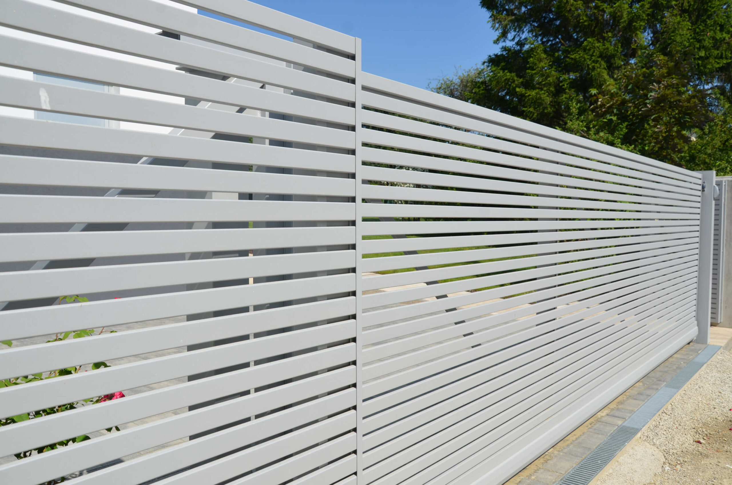 Moderner Zaun aus Aluminium in klarer Optik
