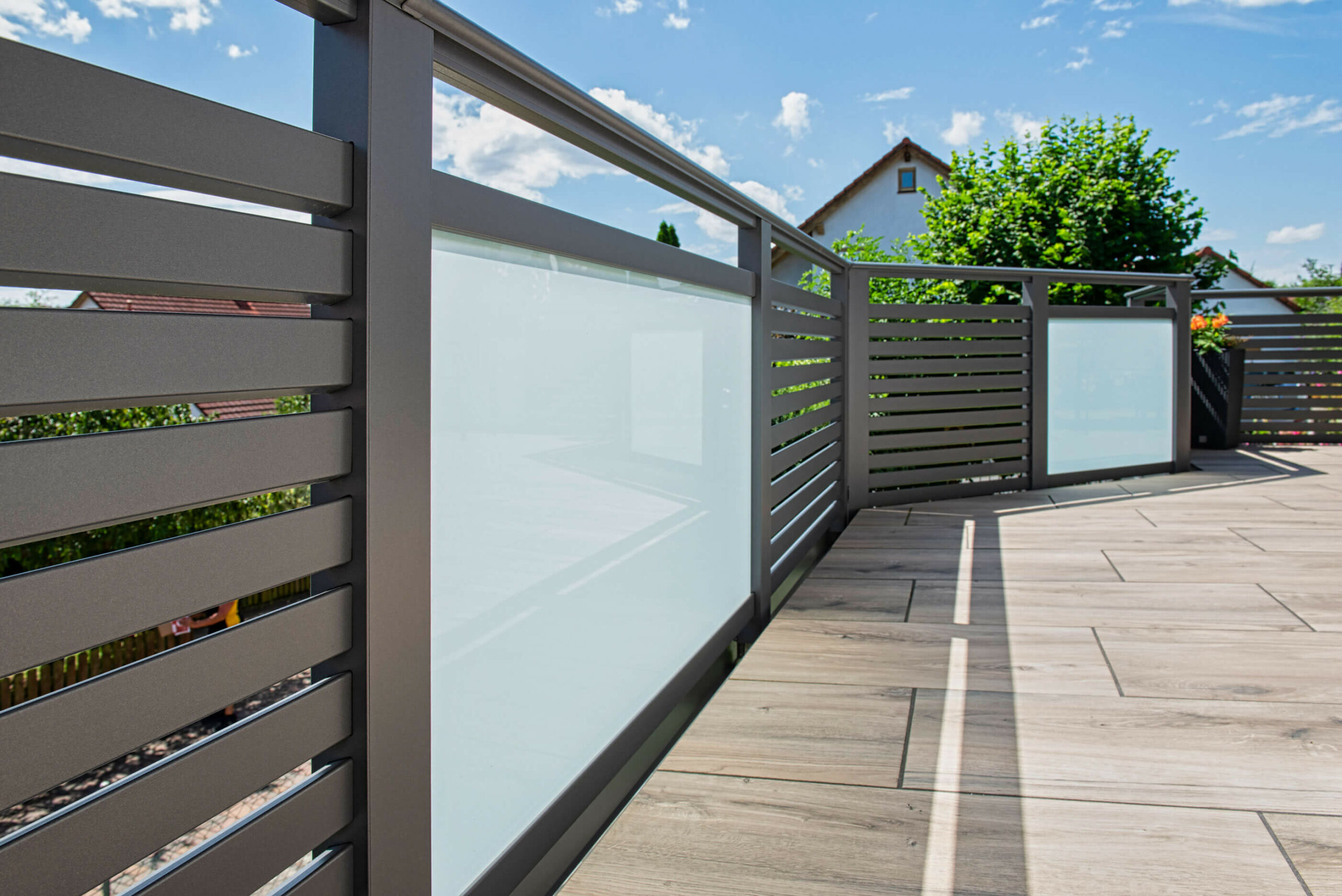 Universales Alu Balkongeländer mit zeitlos eleganter Querlattung